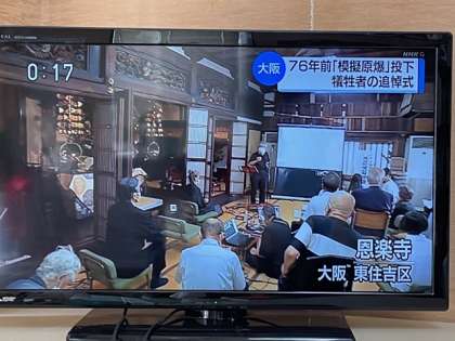 NHKのニュースで放映された田辺模擬原爆慰霊祭の様子です。