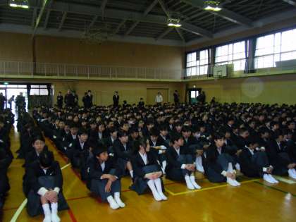 新入生を迎え、全校生徒585名で始業式を行いました。
