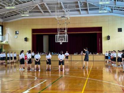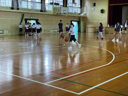 今日は、夕陽丘中学校のバスケットボール部との練習試合です。