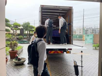第60回大阪府吹奏楽部コンクール(第71回関西吹奏楽コンクール予選)の府大会に向けて、楽器をトラックに積み込みました。