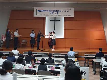 放送部は、NHK杯全国中学校放送コンテスト全国大会決勝において優良賞を受賞しました。