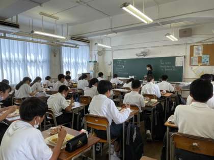 「感染防止のため、黙食、15分で食べましょう」と放送部のお昼の放送で呼びかけてくれました。