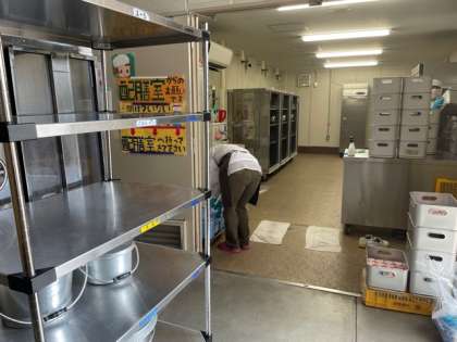 給食配膳店さんたちが時間通りに、給食が食べられるよう準備をしてくださっています。