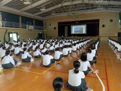 6時間目に、体育館で一泊移住のオリエンテーションを行いました。