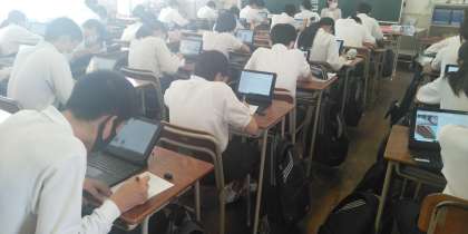 3年生は、タブレットを用いて修学旅行の調べ学習をしました。