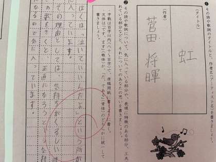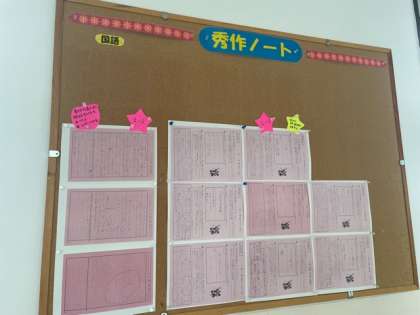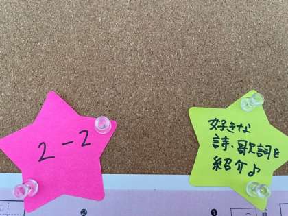 秀作ノートの掲示板に、好きな詩、歌詞の紹介が掲示されています。