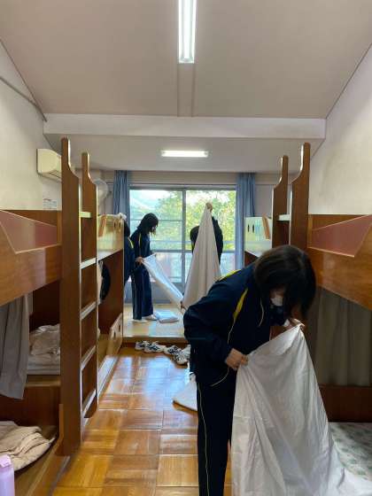 自主的に部屋の皆んなと協力して寝具の片付けをしてました。