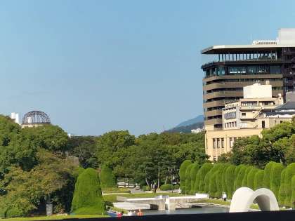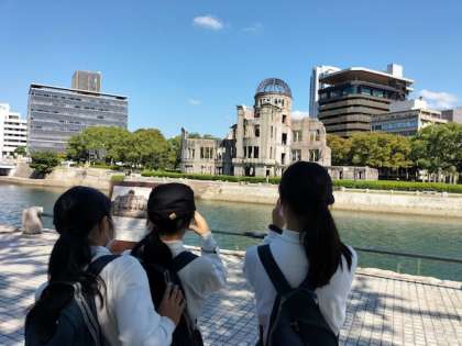 平和ガイドさんのお話を真剣に聞いています。