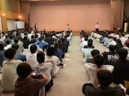 全員が集合して、明日の宮島での班活動についてお話がありました。