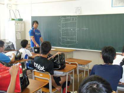 ラブビー部は教室でルールを学習していました。