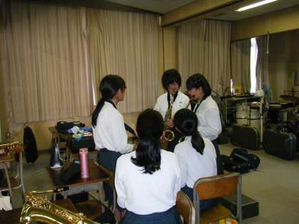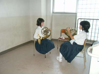 吹奏楽部は先輩が付ききりで、アルトサックス・ホルンの練習をしていました。1年生、なかなか上手でしたよ☆