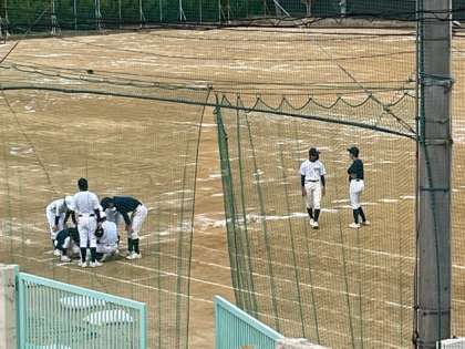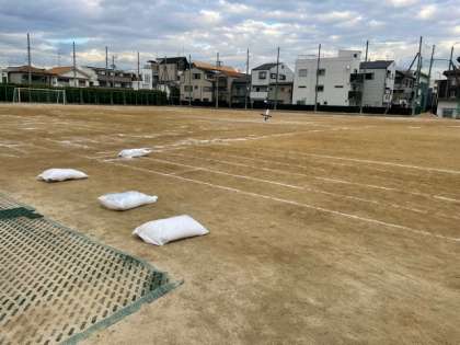 体育大会に向けて、運動場ににがりを撒いてくれています。