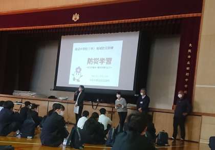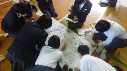 本日は防災訓練があり、1年生は講義を受け、図上訓練をしました。