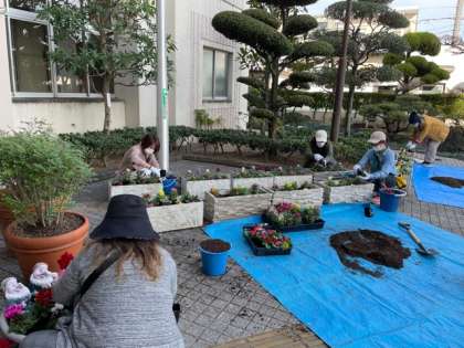 PTA環境施設委員会のみなさまが花の植え替えを行ってくださいました。