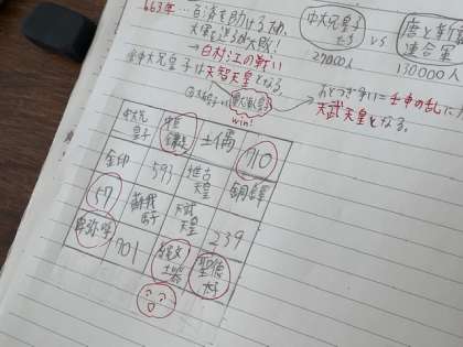 その学習したことをもとに「歴史ビンゴゲーム」で振り返りを行っていました。