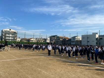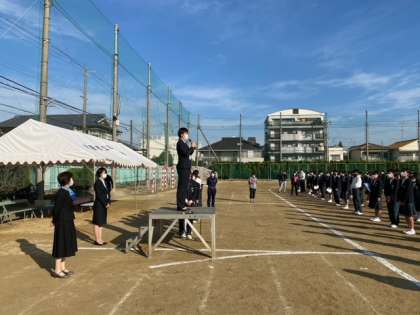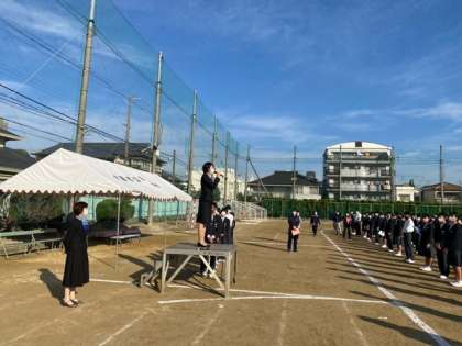 秋と冬の境目とした11月ですが、今日は気持ちのいい空のもと、新しい生徒会のメンバー司会で全校集会を行いました。