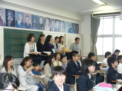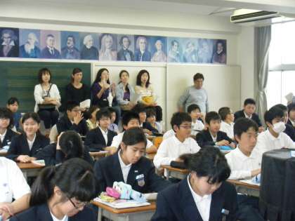 1年生音楽の授業です。保護者の皆さんには、ひな壇に座って参観していただきました。