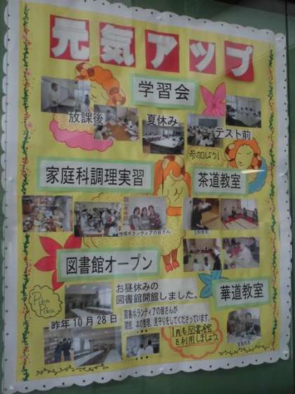 昨年の取り組みについて、玄関に写真入りで掲示していますので、見てください。
