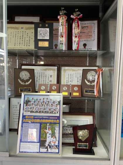 玄関を入ったところに賞状ケースがあります。
