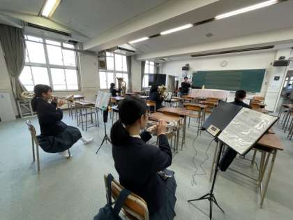 基礎練習をして、それからそれぞれのパート練習を行っています。