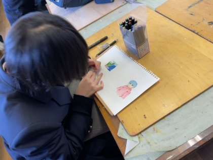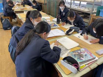 放課後の美術室に行くと、素敵なイラストを見せてもらえ、部員のみんなが優しくて、時間もゆったりしていて居心地がいいですね。