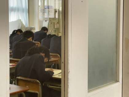 しーんと静まり返り、みんなが答案に向かって一生懸命取り組んでいます。