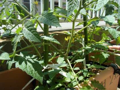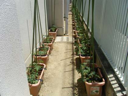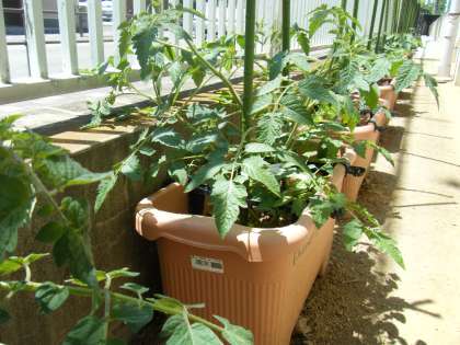 以前、HPでご紹介した、技術科の栽培で植えたトマトが、ずいぶん大きくなりました。実がなるのが楽しみですね☆