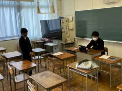 百人一首大会の表彰の伝達と、来週からの平和学習の取り組みについてお話がありました。
