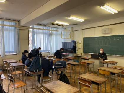 教育相談の順番を待ってる生徒は、待機教室で自習に励んでいました。