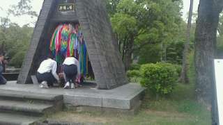 平和への願いをこめてセレモニーを行いました。実行委員を中心に皆で作成した折り鶴を献納しました。
