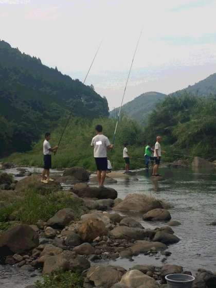 松浦での川釣り体験です。大きな竿がかっこいい!水が冷たく良い気持ちです。