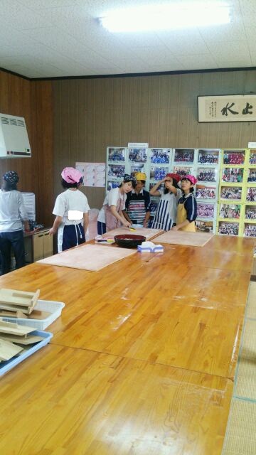そば打ち体験です!! 自分たちで作ったそばを一生懸命に打っています!!
