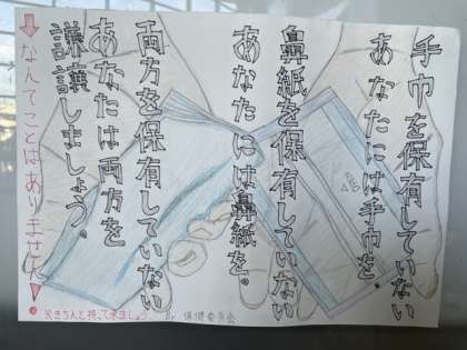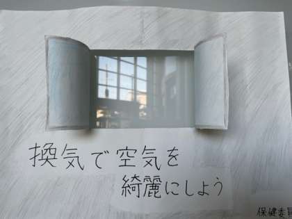 保健委員さんが手洗いや換気をすすめるポスターを作成してくれています。