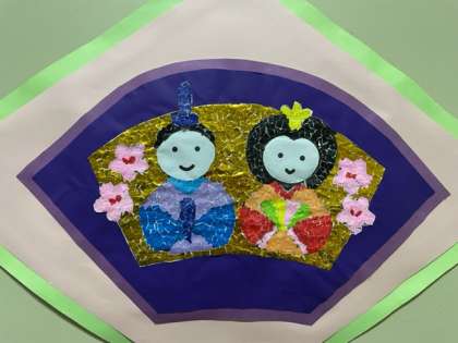 特別支援教室の入り口にかわいらしいお雛様が飾られています。