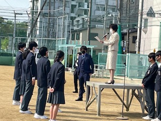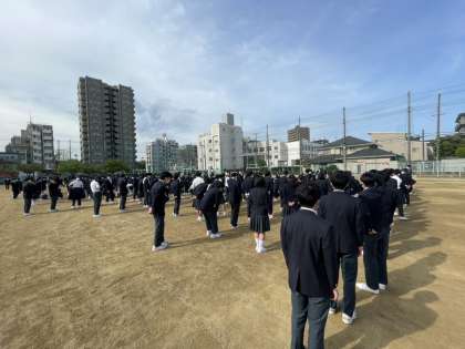 本日の全校集会は運動場で行いました。