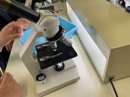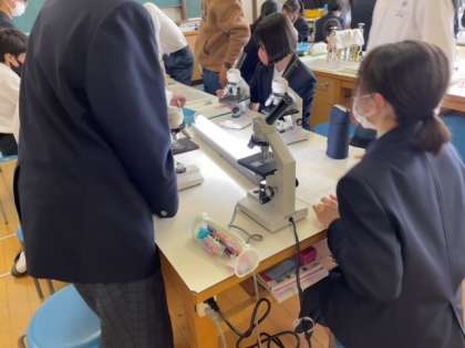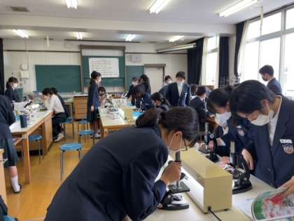 理科の授業では、顕微鏡を使用し、細胞のつくりについて理解しました。