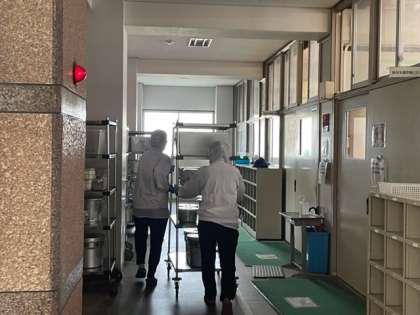 給食配膳員さんが時間通りに給食を運んでくださっています。