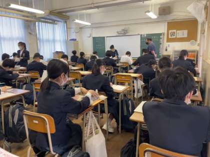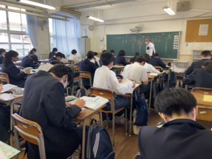 今日の英語の時間は、教科指導の先生とC-netの先生とともに学習しています。