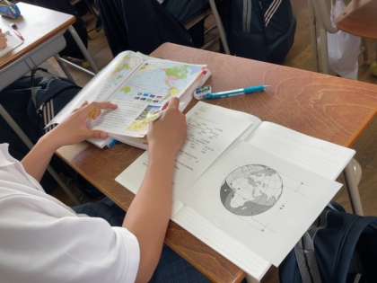 社会では、「どのように地球上の一を表すのだろうか?」をめあてに学習を行いました。