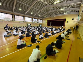 体育館では、ホテルの部屋の班や各活動の班で集まって、当日のイメージを膨らましました。