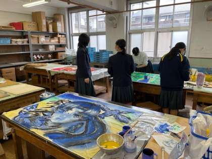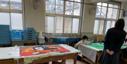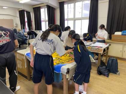 美術科の先生からアドバイスをいただき、さらに工夫を凝らした素晴らしい学級旗になっています。