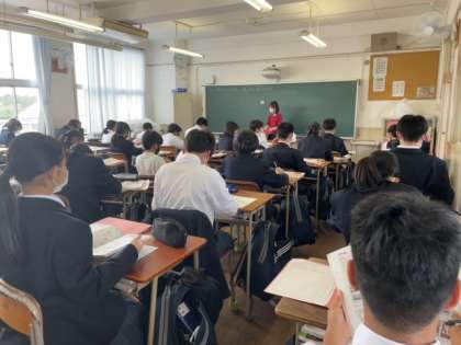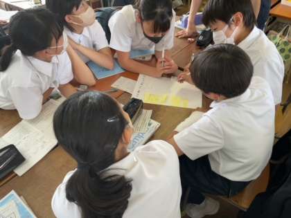 感染対策も取りながら、班ごとに意見をまとめたり、協働学習にも取り組んでいます。