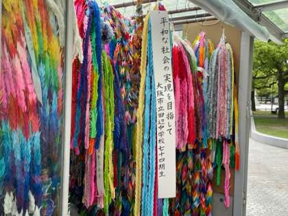 みんなで平和を祈り、折った千羽鶴を捧げました。