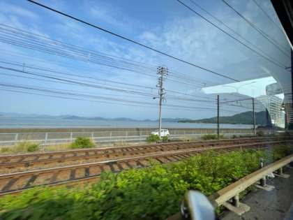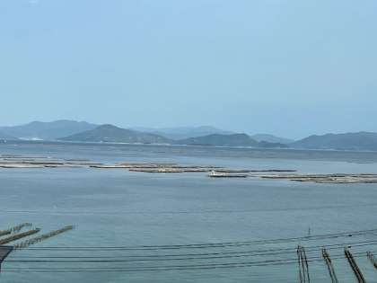 バスから宮島の美しい景色を眺めました。