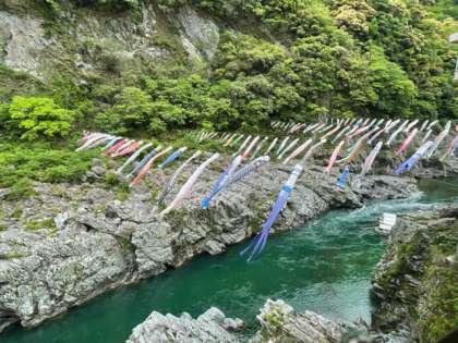 たくさんの鯉のぼりが風にふかれています。