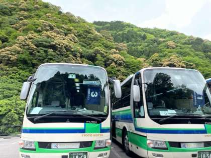大阪に向かってバスは走っています。