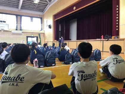 最後に、三溝先生から1年生徒みんなの「協力一致」で、一泊移住を成功させ、笑顔で学校に戻ってきましょうと話されました。