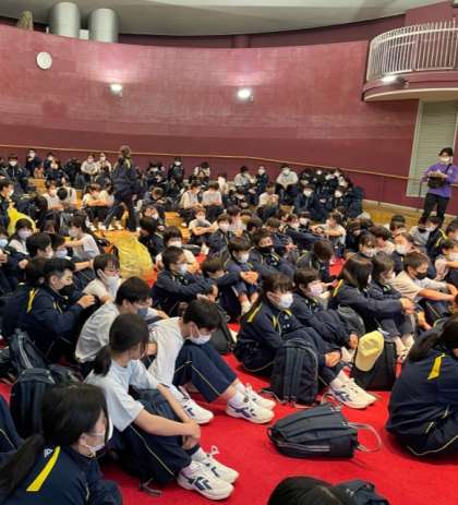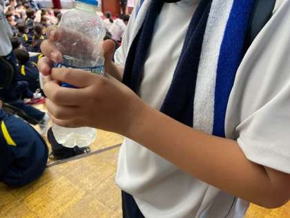 オリエンテーリングから戻り、ホールでスポーツドリンクを飲みました。