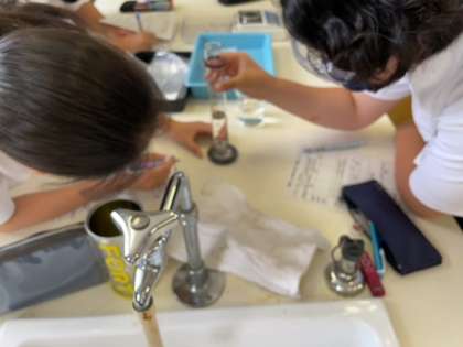 理科室での実験を先生の指示に従って取り組んでいました。