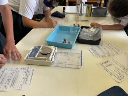 密度による金属の区別の学習を行いました。